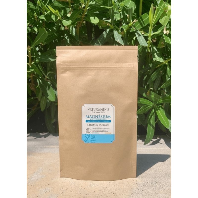 Chez Naturamind, nous avons choisi d’enrichir notre magnésium avec une autre source de vitamines 100% naturelle. Il s'agit d'un complexe végétal qui va permettre d’apporter tous les bienfaits des vitamines du groupe B au 1er rang desquelles, on citera la vitamine B6 ou pyridoxine, fondamentale dans la qualité d’absorption du magnésium.